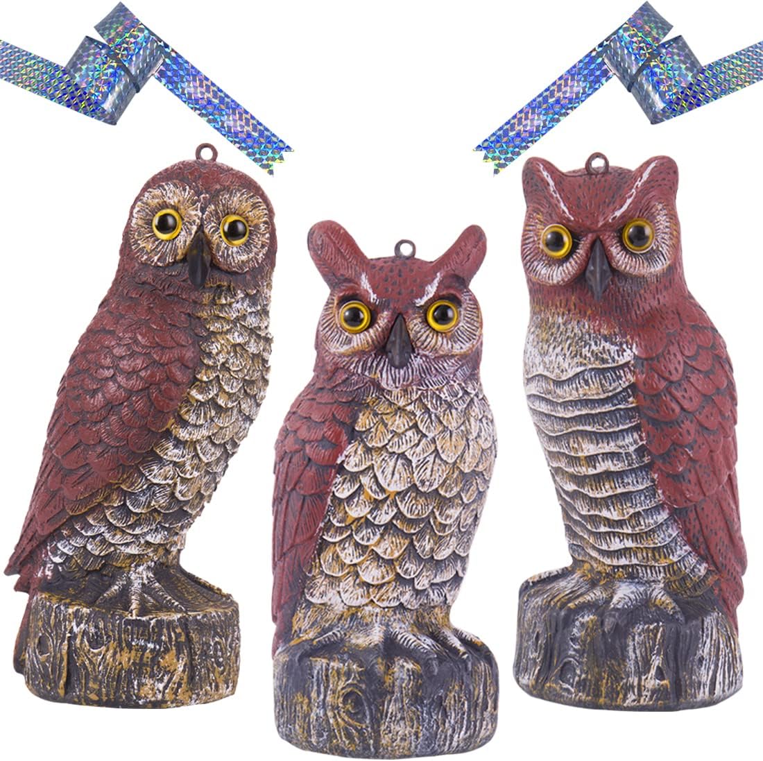 TaiBest 3 Pack Fake Horned Owl Statue With Reflective Tape |